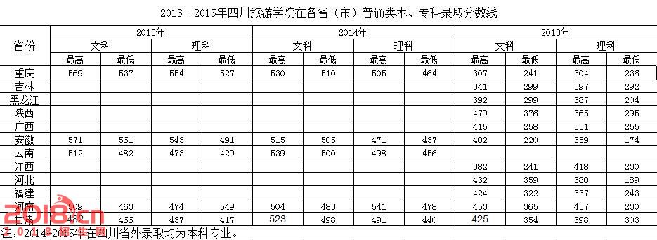 2016四川旅游学院分数线及2015年分数线各省情况完整版数据请进入四川旅游学院招生网官网历年录取栏目查看更新:点击进入查询