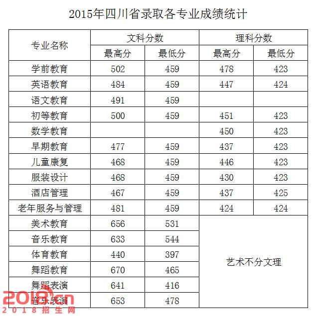 网整理了四川幼儿师范高等专科学校2015年录取分数线各省各专业录取分数情况统计