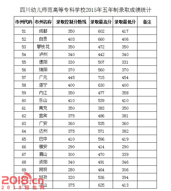 2016四川幼儿师范高等专科学校分数线参考:2018