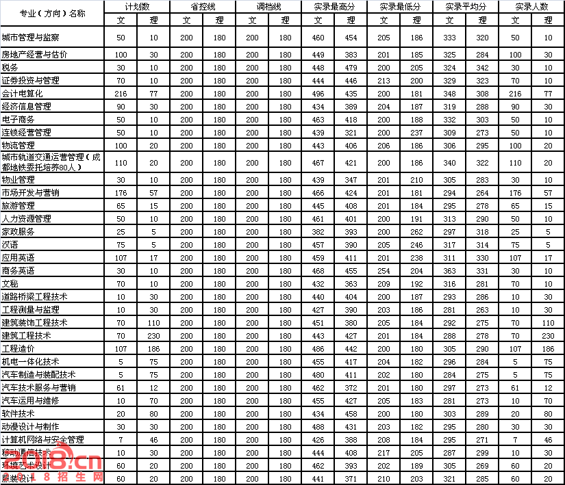 2016四川城市职业学院分数线参考:2018招生网整理了四川城市职业学院2015年录取分数线各省各专业录取分数情况统计