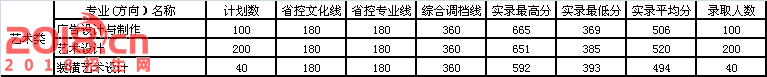 四川城市职业学院2014年四川省艺术类录取分数统计表