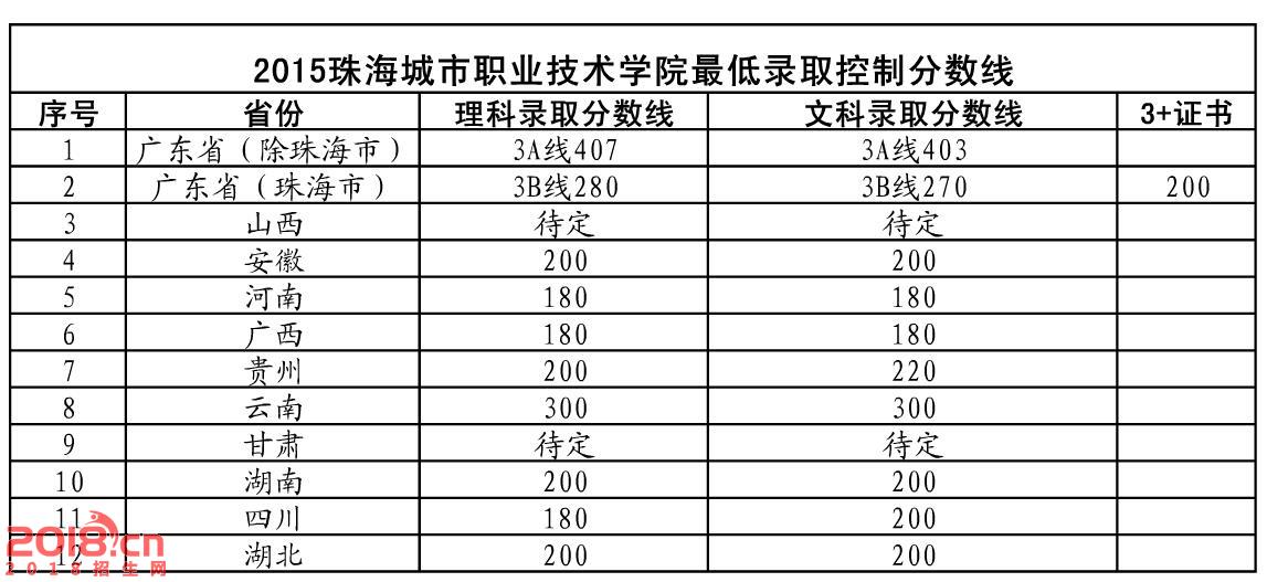 2016珠海城市职业技术学院分数线参考:2018招生网整理了珠海城市职业技术学院2015年录取分数线各省各专业录取分数情况统计