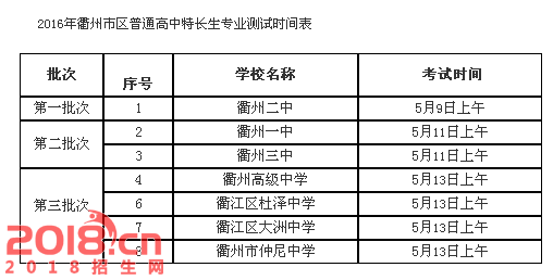 2016衢州中考高中特长生专业测试时间表