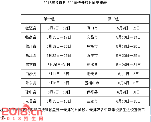 海南省2016年各市县招生宣传开放时间安排表
