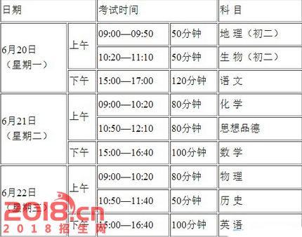 2016年初中毕业生学业考试时间安排如下: