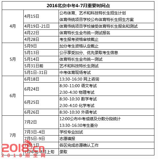 2016北京中考招生录取时间表 2016北京中考招生日程安排