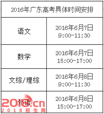 2016广东高考时间表(附科目)
