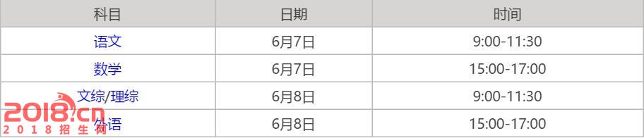 福建2016高考时间表及科目考试时间日程安排详情:
