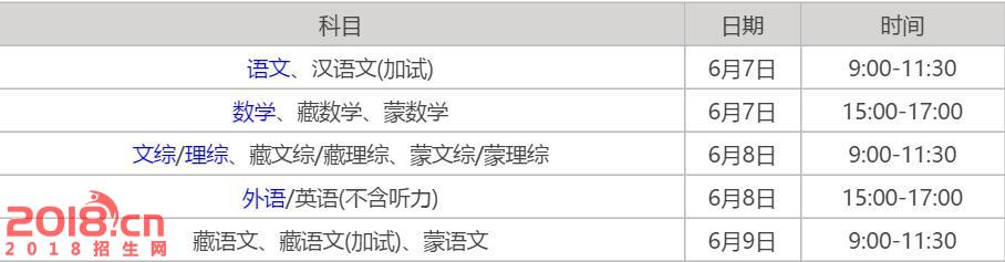 甘肃2016高考时间表及科目考试时间日程安排详情: