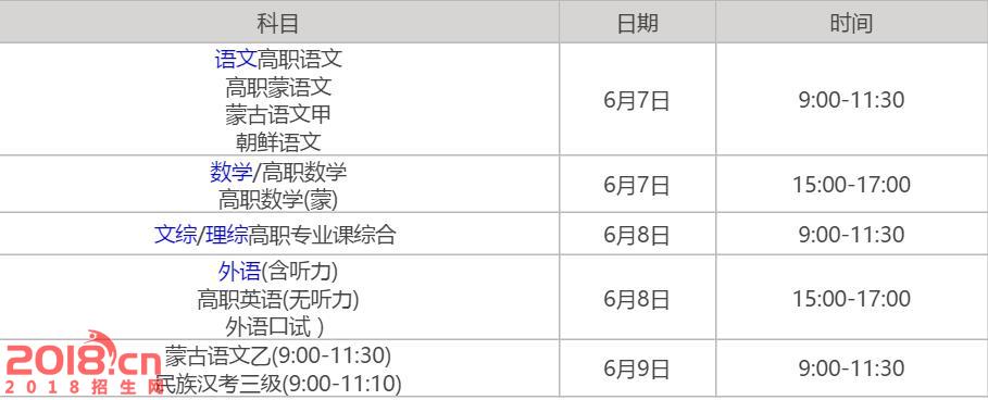 内蒙古2016高考时间表及科目考试时间日程安排详情: