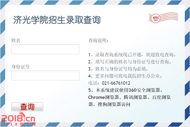 从上海济光职业技术学院官网获悉,上海济光职业技术学院2016年高考录取查询方式如下:考生可登陆上海济光职业技术学院本科招生网陆续查询录取情况,2016上海济光职业技术学院高考录取查询系统入口网址(http://zs.shjgu.edu.cn/)。实际情况已收到学校录取通知书为准!