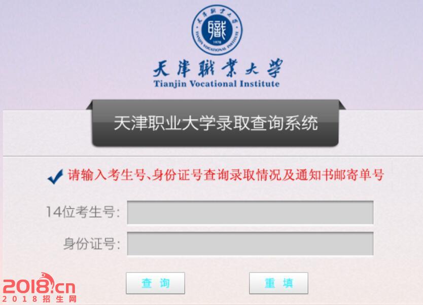 从天津职业大学官网获悉,天津职业大学2016年高考录取查询方式如下:考生可登陆天津职业大学本科招生网陆续查询录取情况,2016天津职业大学高考录取查询系统入口网址(http://zs.tjtc.edu.cn/index.php)。实际情况以收到学校录取通知书为准!