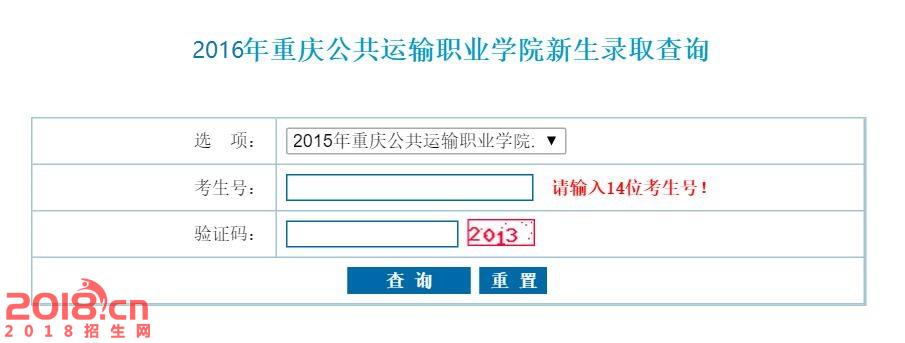 重庆公共运输职业学院2016录取查询系统