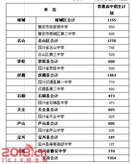 请市招生办按照本通知精神,具体制定《雅安市2016年高中阶段教育学校招生实施规定》。雨城区、名山区、汉源县教育局于5月20日前向市教育局分别报送三所省级示范性普通高中招生计划指标分配到校情况。