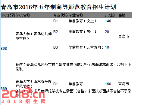2016青岛五年制高等师范教育招生计划公布