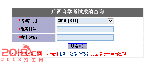 广西2016上半年自考成绩网上查询入口