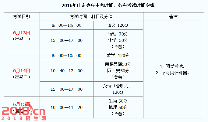 2016年山东枣庄中考时间、各科考试时间安排于目前公布,据了解,往届生、外地市回原籍的,须参加2016年所有科目的考试。应届学生可自愿选择参加地理、生物的两次文化课考试,取最高成绩纳入录取。2013级的初中学业水平地理生物二次考试的考试时间、命题等均与2014级相同。