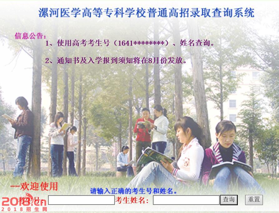 >>>点击进入2016年漯河医学高等专科学校高考录取查询入口>>>