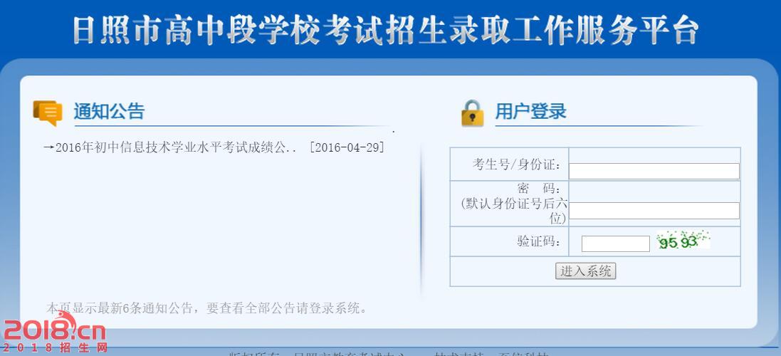 2016日照中考成绩系统入口网址:http://jyks.rizhao.cn/student/ 点击进入日照市教育高中段招生网络管理系统-考生登录