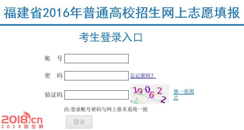 2016福建高考志愿填报系统入口网址:http://www.fjzs.com.cn/UEPORTLET/jsp/voluns/volunlogin/login.jsp 进入福建省招考在线福建省教育考试院官网-福建省高考志愿网上填报系统
