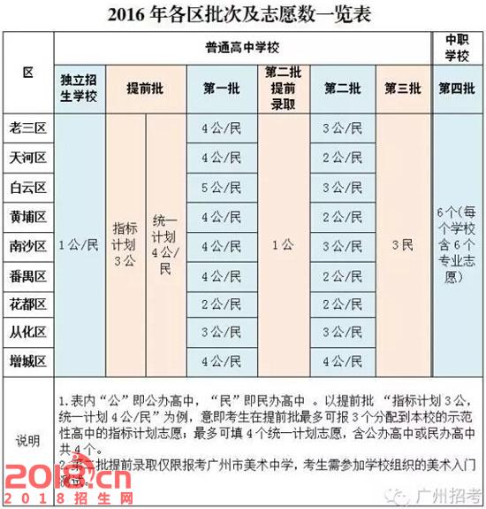 原则上民办普通高中学校除在原等级批次安排不得少于招生总计划的30%外,学校可自主选择另一个批次(提前批除外)安排招生计划。除老三区(越秀、海珠、荔湾三区,下同)外其他面向本区招生的普通高中学校的招生批次(一至三批)由各区确定,但整个招生进程必须与全市保持一致。