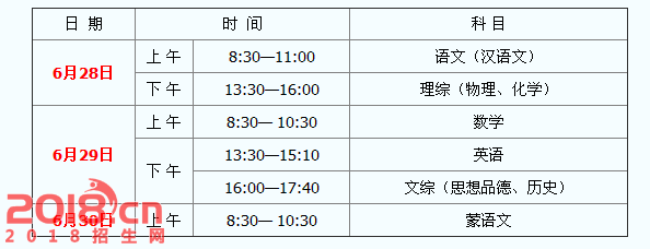 中考总分830分。其中:语文(汉语文、蒙语文)满分150分,数学满分150分,英语满分120分,理综满分200分(物理120分,化学80分),文综满分100分(思想品德50分,历史50分),初二生物、地理和体育卫生常识统一结业考试满分50分,体育考试满分50分,理化实验操作考试满分10分。
