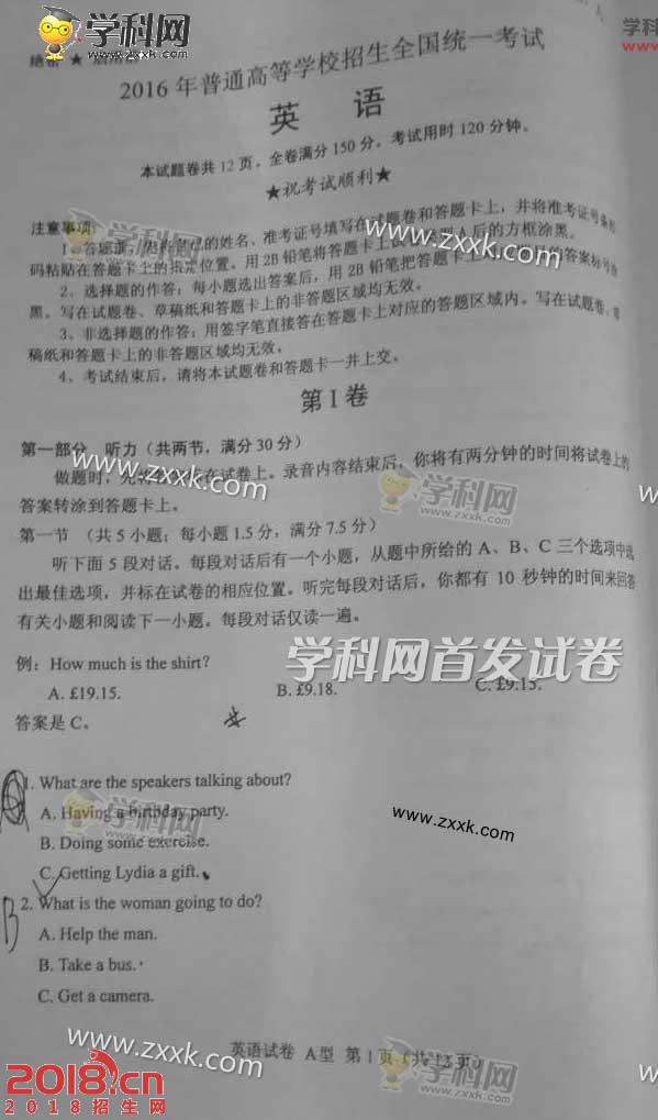 2016新课标1高考英语试卷及答案下载。2018招生网将在考后第一时间发布2016新课标Ⅰ卷英语试题真题word版下载、新课标1高考英语试卷答案图片版,敬请关注!
