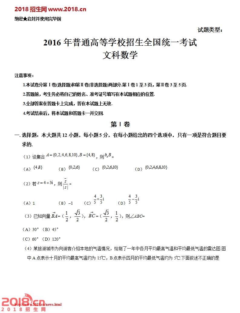2016全国卷3高考数学真题及答案下载。2018招生网发布新课标2016全国卷3高考数学试题真题word版下载、全国卷3高考数学试卷答案图片版,敬请关注!