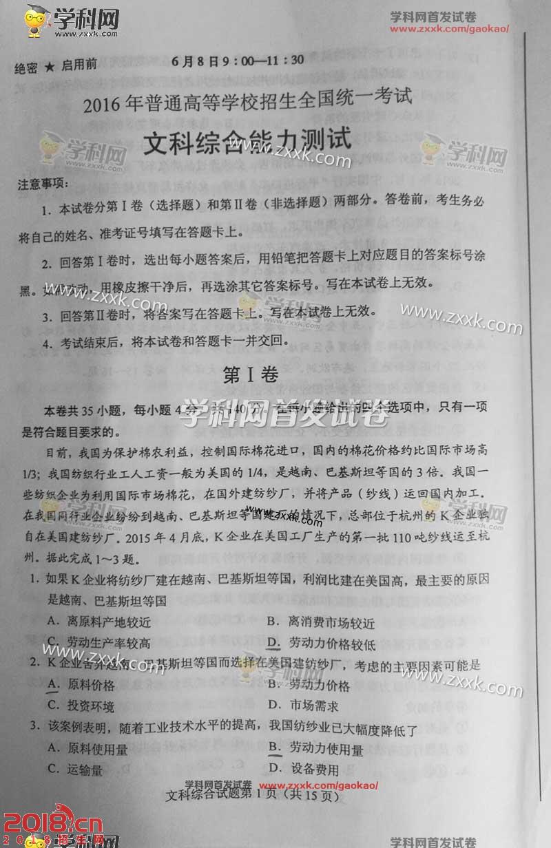 2016全国卷3高考文综真题及答案下载。2018招生网发布新课标2016全国卷3高考文综试题真题word版下载、全国卷3高考文综试卷答案图片版,敬请关注!