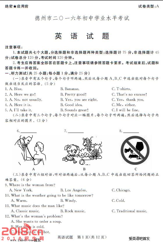 2016年德州中考英语试题及答案
