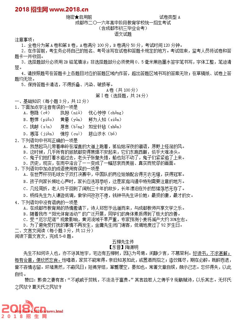 2016年成都市中考语文试卷及答案下载 2016成都中考语文试卷word 成都中考语文试题答案清晰图片版