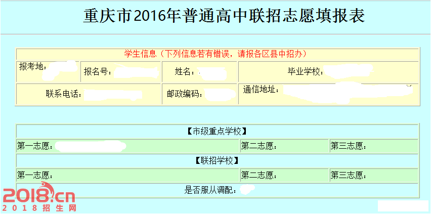 2016年重庆中考志愿填报内容主要包括以下三个方面: