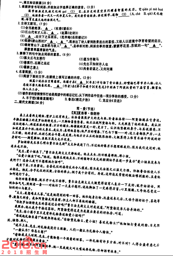 2016年衢州市中考语文试卷及答案下载 2016衢州中考语文试卷word 衢州中考语文试题答案清晰图片版