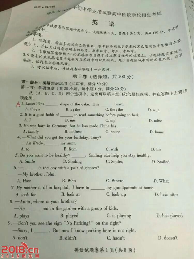 2016年绵阳市中考英语试卷及答案下载 2016绵阳中考英语试卷word 绵阳中考英语试题答案清晰图片版