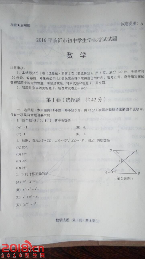 2016年临沂市中考数学试卷及答案下载 2016临沂中考数学试卷word 临沂中考数学试题答案清晰图片版