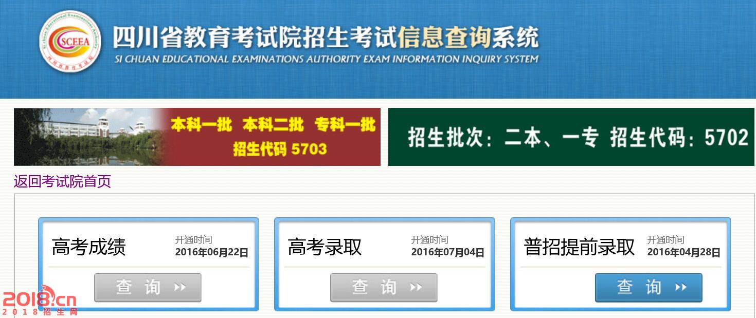 2016四川高考成绩查询系统入口网址:http://cx.sceea.cn/ 进入四川省教育考试院招生考试信息查询四川高考成绩查询入口 四川高考成绩查询网址 四川高考成绩查询方式如下