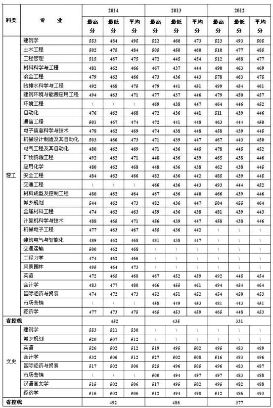 西安建筑科技大学华清学院2014年录取分数线 历年西安建筑科技大学华清学院陕西省各专业录取线