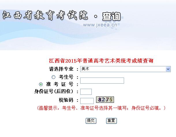 2015江西高考美术统考成绩查询系统入口网址:点击进入江西省教育考试院成绩查询系统