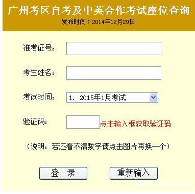 2015年1月广东广州自考座位号查询系统入口:点击查询 (广州招考网 -- 招生考试的门户网站首页)