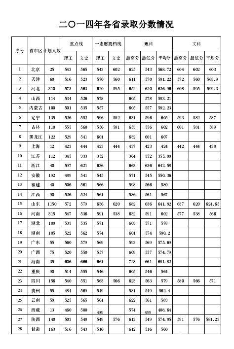 省份 | 录取最高分/最低分 | 招生人数 | 文化课最低分 | ||||||