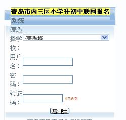 青岛市内三区小学升初中联网报名系统请选择学校: 用户名: 密码: 验证码: