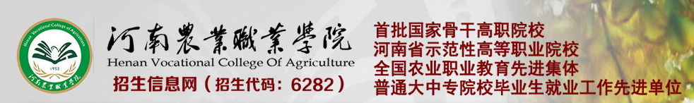 “国家示范性高等职业院校建设计划”骨干高职院校河南农业职业学院是经河南省人民政府批准、国家教育部备案的全日制公办普通高等院校。学院是中国职业技术教育学会农业职业教育专业委员会副主任单位、河南省农业职业教育集团理事长单位、河南省农业职业教育研究会会长单位、河南省职业教育与成人教育研究会副会长单位。学院地处郑汴之间的中牟县城,交通便利。随着郑东新区开发和郑汴一体化建设,学院的区位优势日益突出。学院占地面积1108亩,建筑面积26.8万平方米,图书馆藏书45万册,教学用各类实验室80个,其中园艺、种子检验、组织培养、动物解剖、计算机、会计电算化等专业实验室在全国同类院校中居领先水平。学院现有植物科学系、动物科学系、食品科学系、经济贸易系、电子信息工程系、基础科学系等33个高职专业。教职工536人,其中教授、副教授86人,硕士、博士研究生139人,在校生11600人。