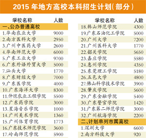 广东2015年社会发展计划出炉 广东地方普通高校本科招生计划公布