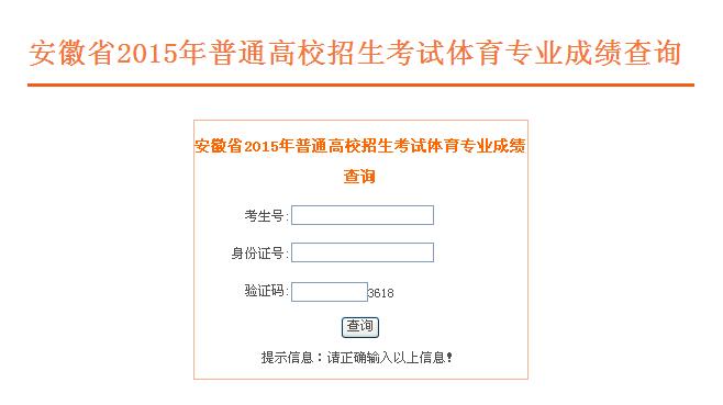 2015安徽高考体育成绩查询系统入口网址开通:http://www.ahzsks.cn/ 点击登陆安徽省教育招生考试院查询 安徽省2015年普通高校招生考试体育专业成绩查询