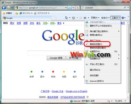 2、启用IE浏览器兼任模式:工具——兼容性视图打钩。