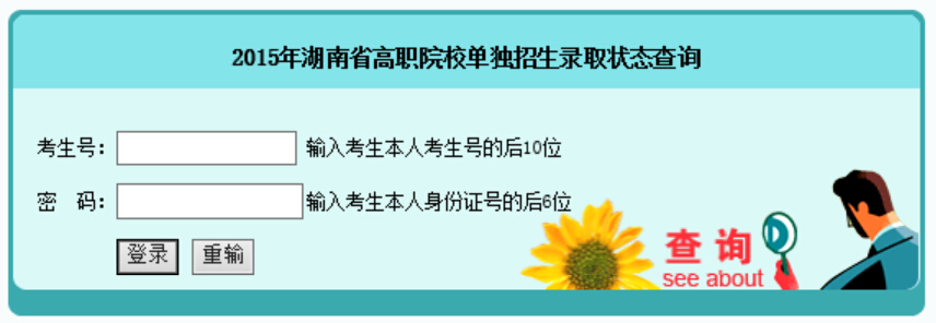 2015年湖南省高职院校单独招生录取状态查询