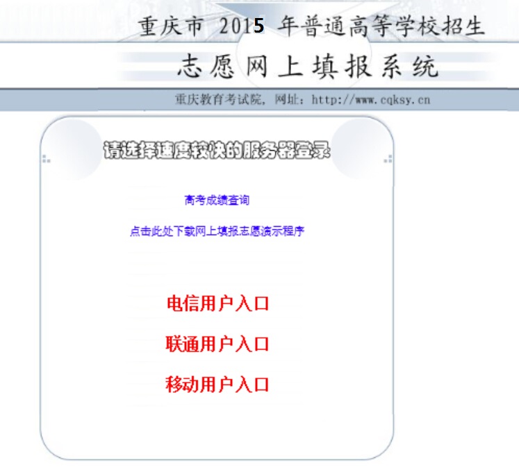 2015重庆高考志愿填报系统入口网址:http://www.cqzk.com.cn/ 进入重庆招考信息网2015高考志愿填报专栏进行填报