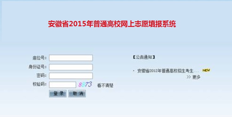 2015安徽高考志愿填报系统入口网址:http://zytb.ahzsks.cn/ 点击进入安徽省教育招生考试院网站志愿填报系统