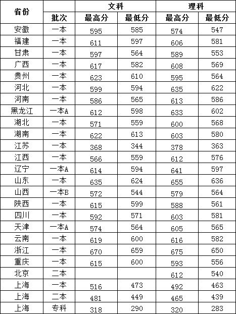 上海对外经贸大学2015录取分数线及2014年各省分数