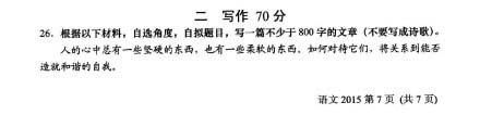 2015上海高考作文题目公布:如何对待内心的坚硬与柔软